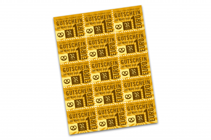 Mit unseren Gutschein Bögen können Sie Genuss schenken. Ein Bogen besteht aus 15 leicht abtrennbaren Gutscheinen im Wert von je 1 Euro.