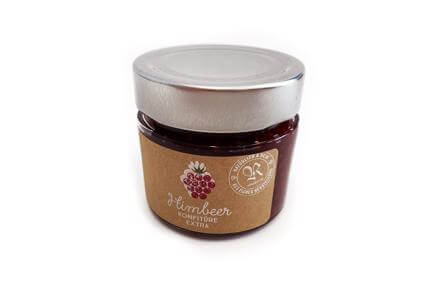 Unsere hausgemachte Himbeer Konfitüre extra schmeckt besonders fruchtig durch den hohen Fruchtanteil.